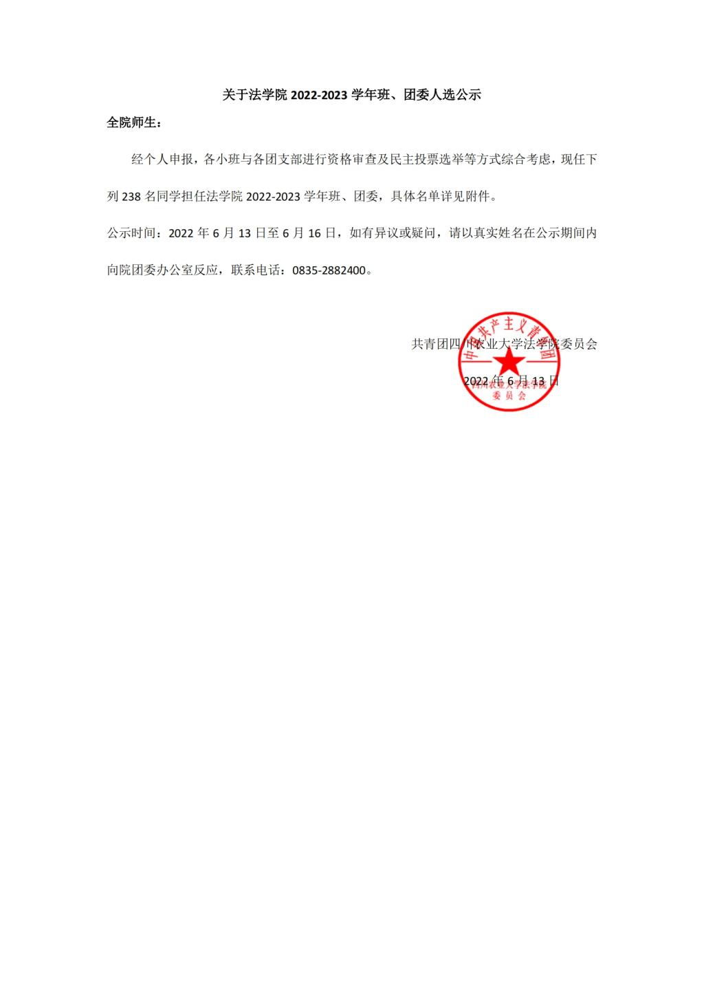 关于yl8cc永利官网2022-2023学年班、团委人选公示