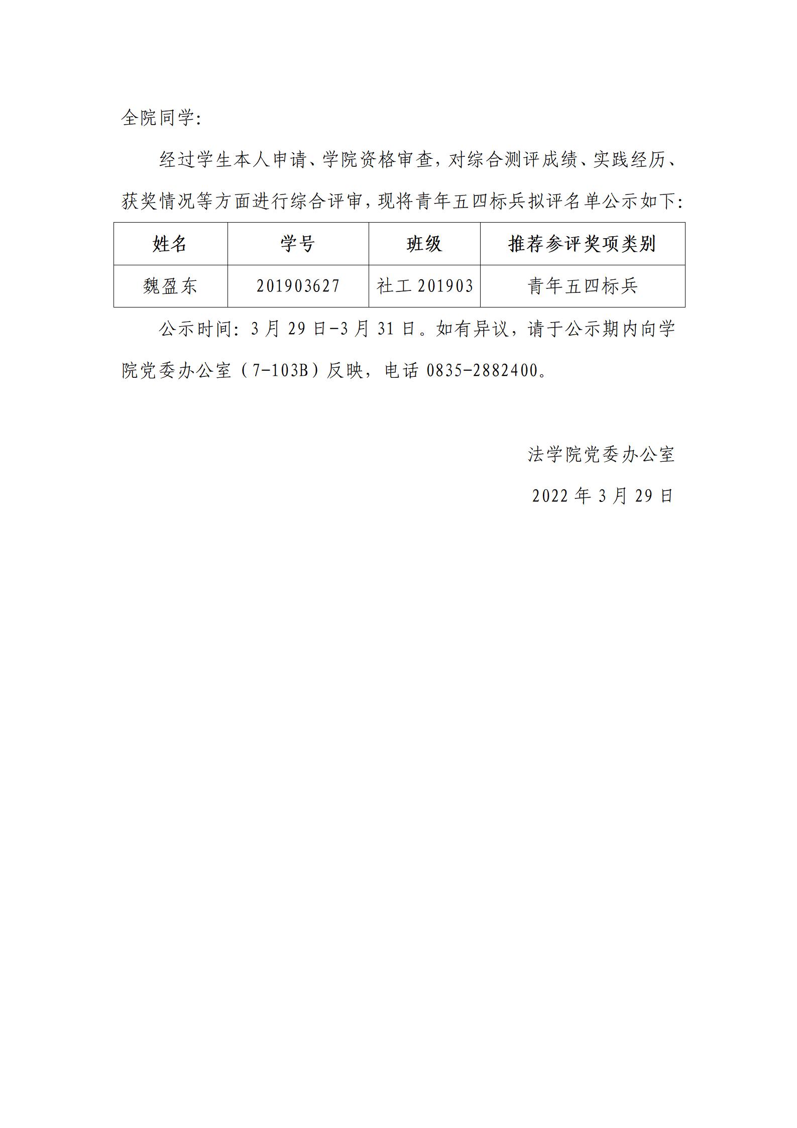 关于2021-2022学年青年五四标兵拟推荐结果的公示