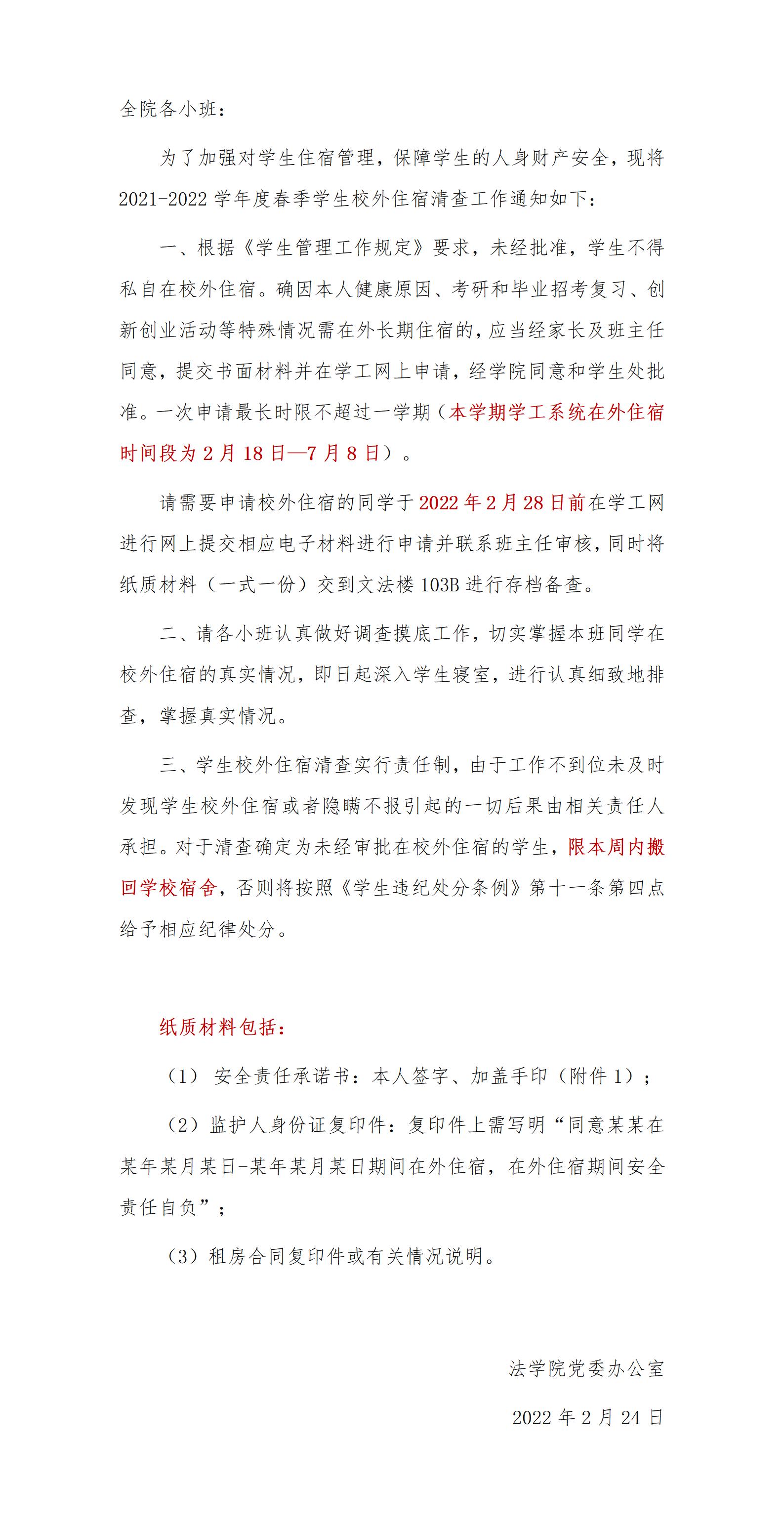 yl8cc永利官网关于2021-2022学年度春季学生校外住宿清查的通知