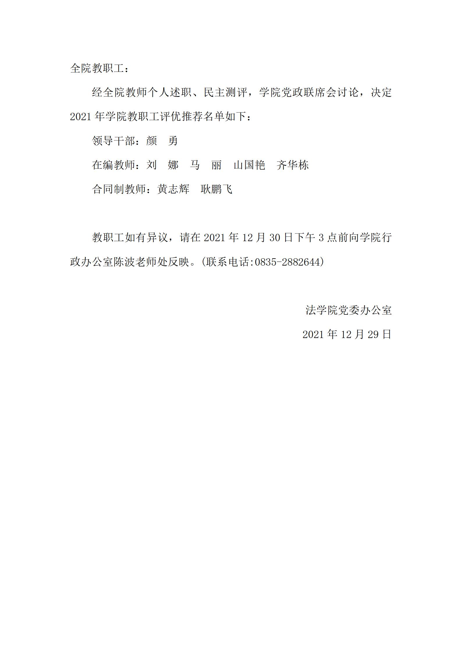 关于yl8cc永利官网教职工2021年度考核评优结果公示