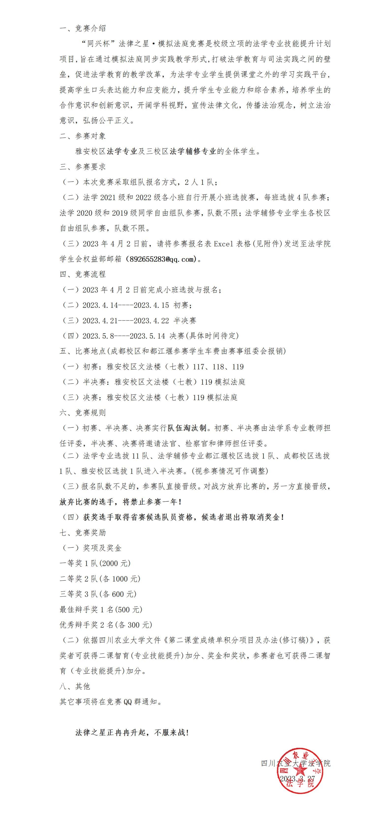 2023年度法学专业技能大赛“同兴杯”法律之星·模拟法庭竞赛报名通知