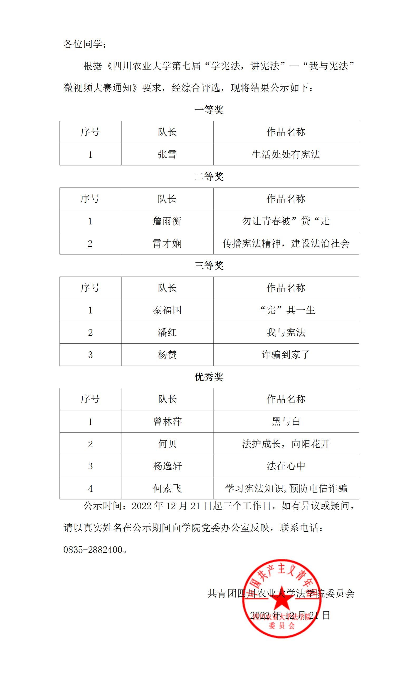 第七届“学宪法,讲宪法”——“我与宪法”微视频比赛结果公示