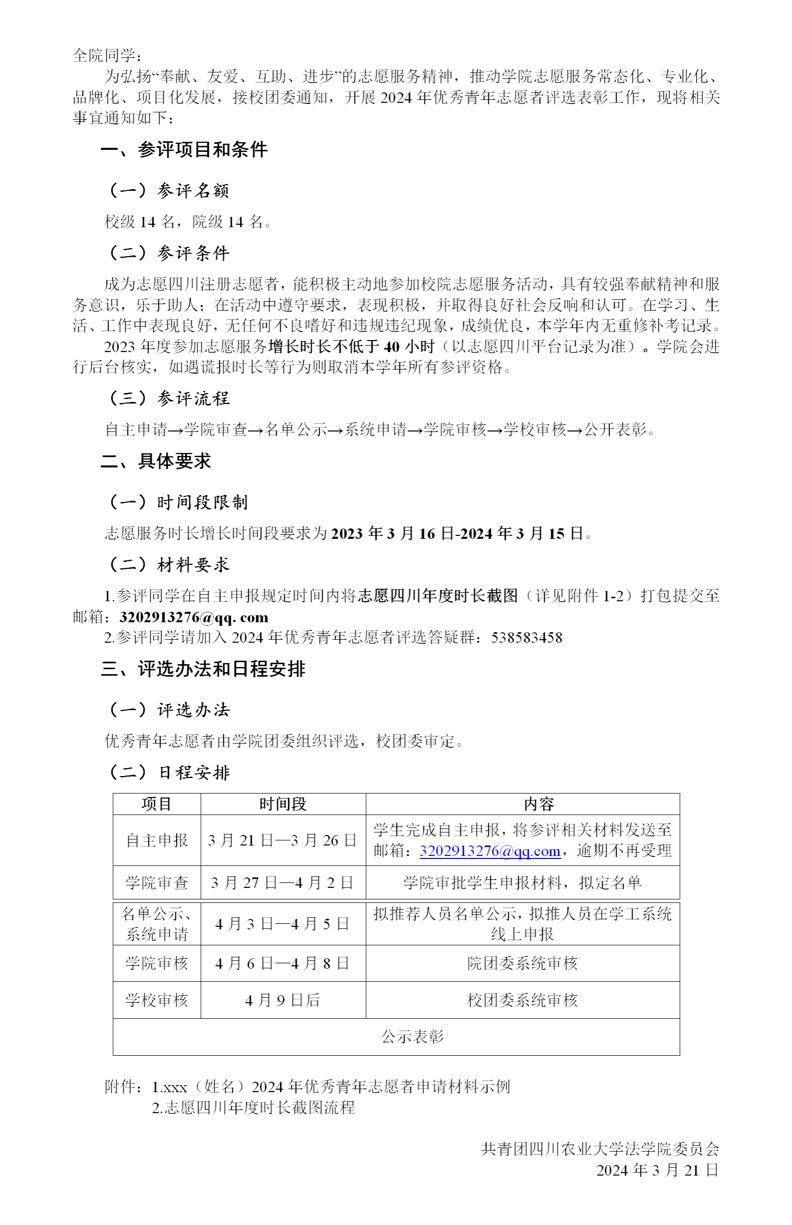 yl8cc永利官网关于开展2024年优秀青年志愿者评选表彰的通知