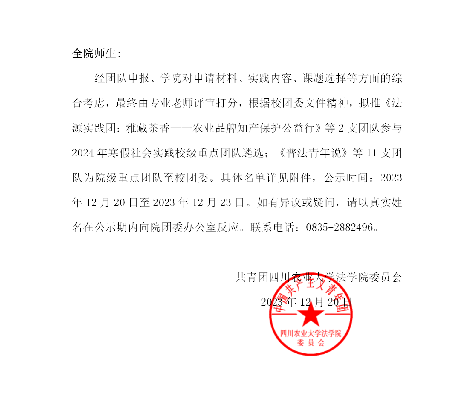 关于2024年寒假社会实践重点团队选拔结果的公示