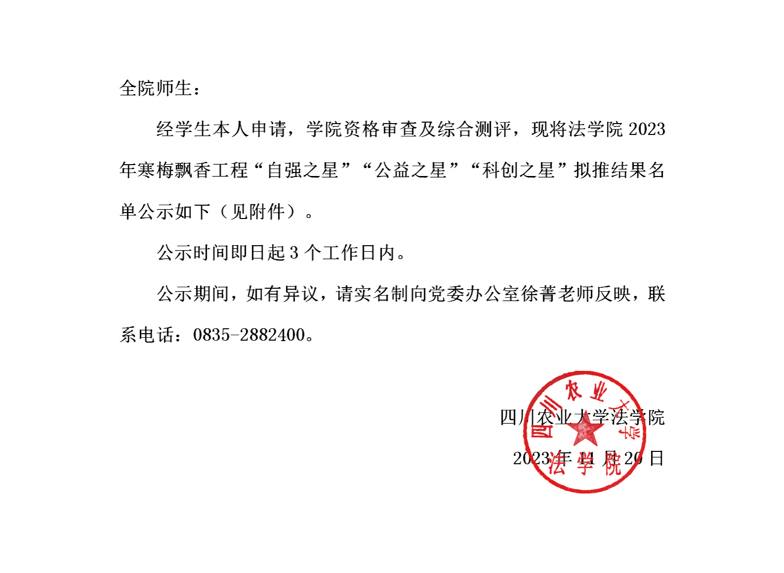 yl8cc永利官网2023年寒梅飘香工程“自强之星”“公益之星”“科创之星” 拟推结果公示