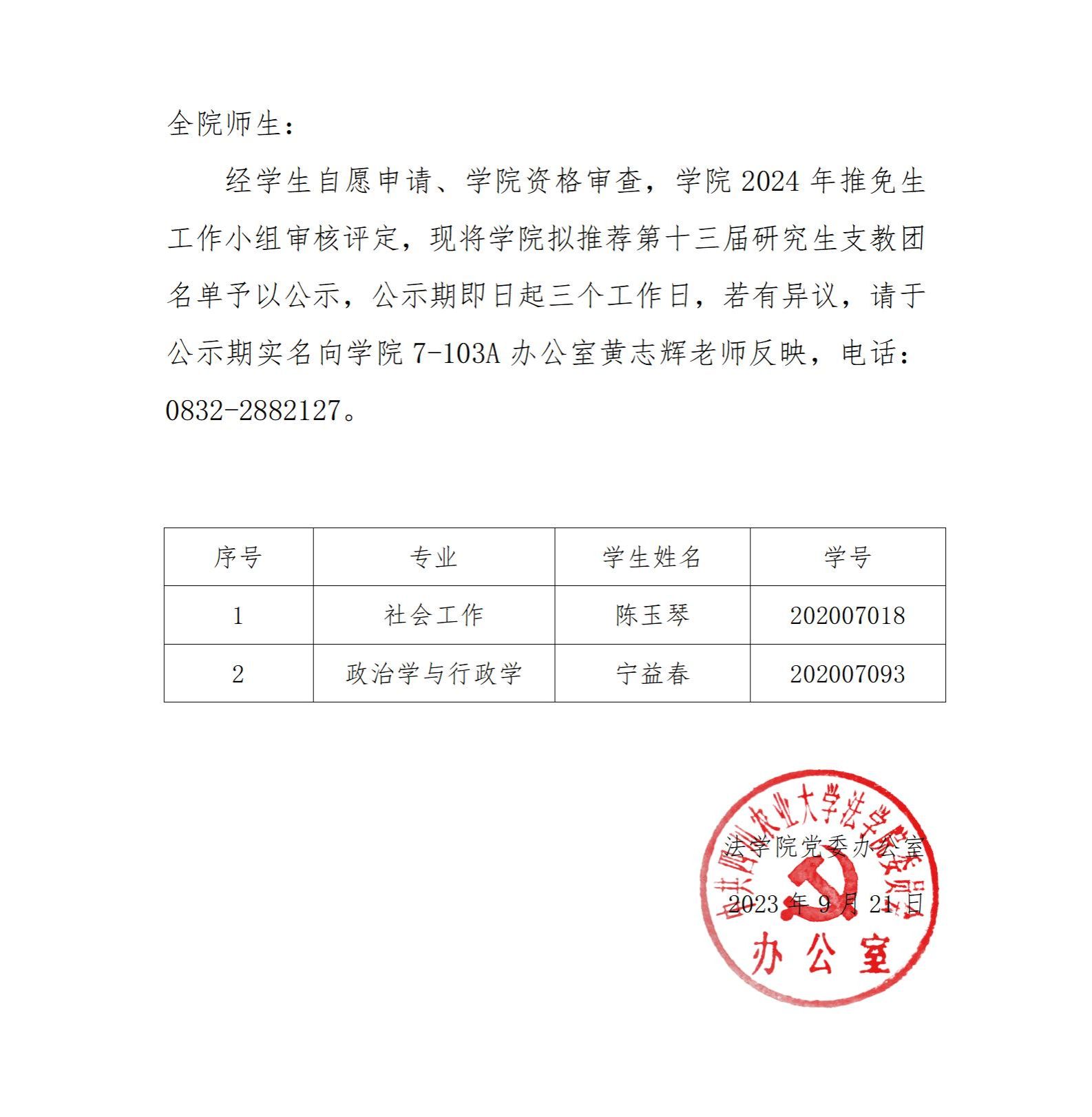 yl8cc永利官网拟推荐第十三届研究生支教团名单公示