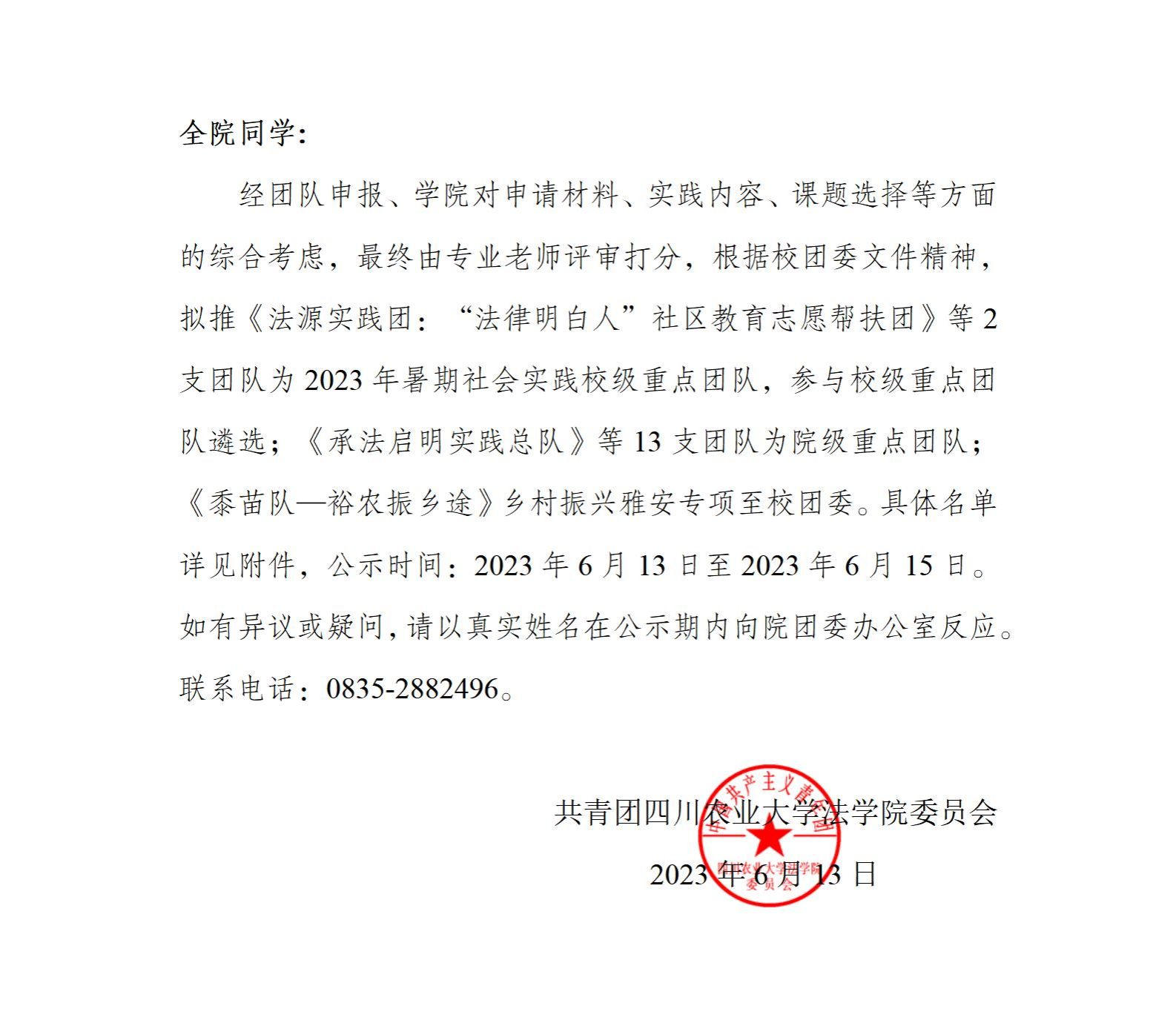 关于2023年暑期社会实践重点团队、乡村振兴地方专项选拔结果的公示