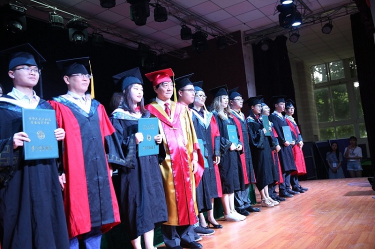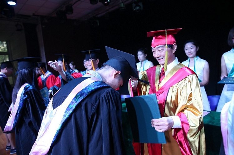 在欢快激昂《相聚在桂花飘香的时节》音乐声中,毕业生们怀着万分激动的心情走上主席台。在全场如潮的掌声中,主席台领导和老师一一与同学们握手祝福,为他们扶正流苏、授位,并与同学门合影留念。