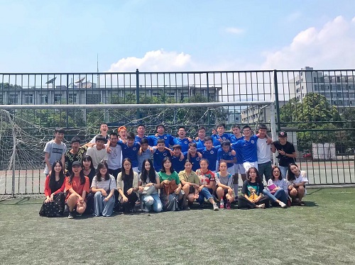 比赛前队员们个个激情满怀积极做好准备。开场十分钟,食品队球员门前解围失误将球漏进禁区,我方球员28号白马加措抓住机会一脚劲射拿下开门红。紧接着19号吴映靓任意球直奔球门而去,无奈被对方门将拿下,错失良机。32分钟,8号唐唯议发出角球,10号陈凌头球顶向右上方死角破门,沸腾全场!69分钟42号杨紫坤在进攻中不幸负伤下场。紧接着因食品门将禁区外拿球,我方获得一次任意球机会,19号吴映靓打门射高。80分钟,19号开出角球,10号陈凌再次头球破门,梅开二度,稳坐本次联赛射手榜榜首位置!最终我方以3-1的比分拿下比赛,也拿下本次比赛的第一名(体育学院和教职工不计入名次)。比赛场上,队员们个个雄姿英发,在场上你争我夺,动作潇洒帅气,观众亦激情四射,现场气氛十分活跃。
