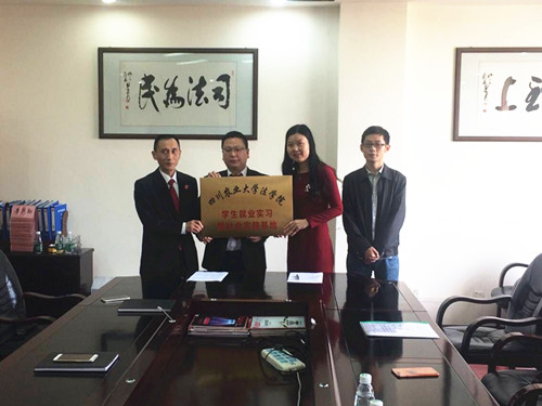 刘思麟一行先后联系走访了眉山市东坡区人民法院、德阳市中级人民法院、眉山市东坡区苏祠街道办事处、眉山市东坡区悦兴镇人民政府、仁寿县曹家乡人民政府、都江堰市安龙镇人民政府、仁寿县陵州天立教育咨询有限公司等7家单位,并与7家单位签订了“学生就业实习暨教学实习基地”。