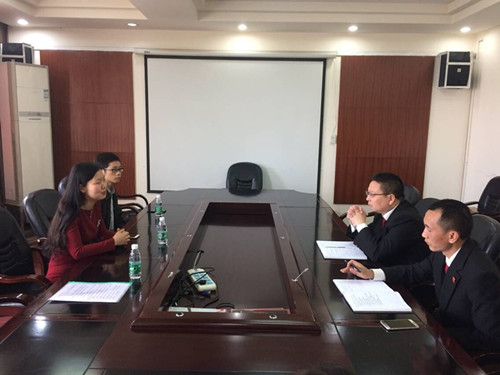 刘思麟一行就学院的基本情况、专业发展、人才培养、校地(校企)合作等情况进行了说明,特别是对政治与行政学专业聚焦在城乡基层治理人才培养,社会工作专业聚焦在社会组织管理与社区治理、农村(灾害)社会工作与社区发展人才培养,法学专业聚焦在新兴涉农领域法律人才培养等方面的探索和取得的成绩进行了详细介绍,她希望双方能搭乘学校专业建设年的东方,今后能来教师科研项目申报、校企人才培养、学生就业实习实践等方面开展深度合作。