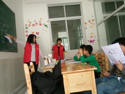 活动期间,志愿者们通过老师授课与自主练习相结合的模式对小朋友进行了基础的英语教育,使孩子们能够熟悉地运用几种基础英语句型进行问答。课堂气氛十分活跃,有几名孩子还主动要求和志愿者进行对话PK。除此之外,志愿者还充当了音乐老师的角色,征集孩子们的意愿并选定歌曲,进行“1+1”模式的音乐教学。
