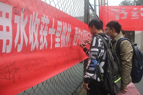 此次活动将宣传节约用水与爱心传递相结合。活动中,同学们需在“节水”横幅上签字,即可以他们名义向山区小学捐去饮用水。学院志工部也在设点宣传的同时面向全校征集“送水志愿者”,号召大家将这份爱心亲手传递到山区小朋友手中。活动中,有不少同学主动到宣传点询问志工部的志愿者们“我可不可以买来矿泉水为小朋友们捐水?”、“怎样才能当上送水志愿者,有什么要求吗?”、“我要登记,也想加入你们!”……