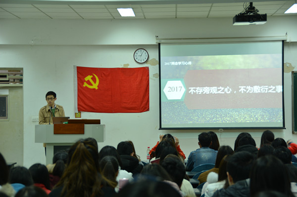 王世友老师从“有关两会的总体感受”、“关乎你我的三件实事”、“再谈国家是人民的事业”三个板块对2017年两会做了深入细致地解读。他首先从“讲政治、接地气、措施实”三方面谈了自己对本次两会的总体感受,随后他选取了“取消手机国内长途及漫游费”、“脱贫攻坚”、“提高博士研究生国家助学金补助标准”等与大学生学习和生活息息相关的几个热点问题对今年的两会精神进行了深入浅出的讲解和说明。随后他还从马克思的名言“思想一旦离开利益,就会使自己出丑”引入,让同学们明白做一名合格的党员,不能空谈理想和抱负,而应脚踏实地,在实际生活中践行党员的责任和义务。