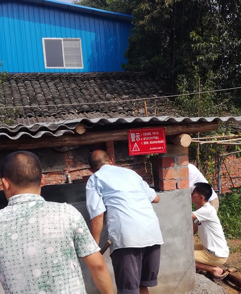 今日又对各村社农村沼气安全工作进行检查,检查采用逐村入户的方式,在村委会的配合下,重点检查了沼气安全生产责任制是否落实,防范沼气安全事故的技术措施是否建立,沼气设施定期保养、检查制度是否落实,沼气建设使用场所安全警示标志是否明显、完整,沼气设施的消防、井盖、护栏等安全措施是否齐全、规范、有效,无害化处理制度是否健全、落实等问题,要求所有沼气池全部加盖盖板,废弃沼气池应及时填埋,严防人畜掉入池中,造成意外事故。同时,对于未在沼气池边贴警示牌的农户进行督促,并帮助张贴危险提示牌,要求必须树立安全意识。