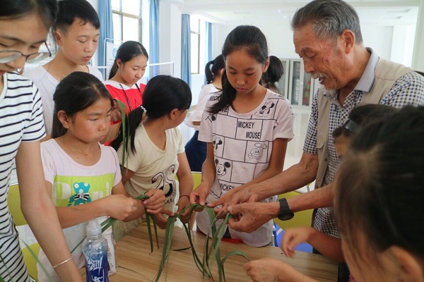 杨爷爷用自己的双手为小朋友打造了一场草叶魔术,小朋友用自己的双手为传统文化编织了流传的纽带。