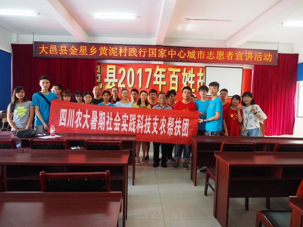 7月13日上午9点整,在大邑县金星乡黄泥村政府举办了国家中心城市志愿宣讲活动。大邑县下属乡镇干部职工、群众群体以及川农打暑期三下乡社会实践志愿者到场参与了本次会议。本次会议由五一劳动模范、四川大学客座教授周培验作为主讲人,为我们解读国家政策带来的改变以及最新颁布的国家政策即将带给每一个人的切实便利。