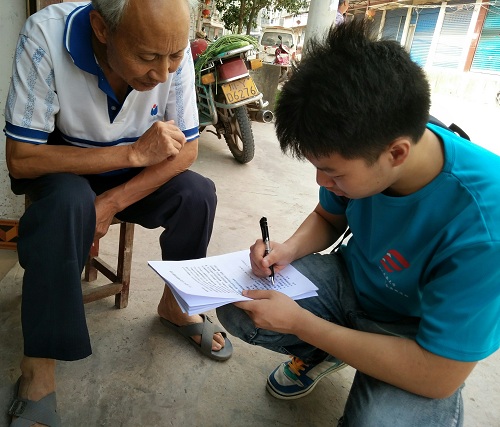在街道尽头的一间平房前,几位老人正坐着聊天。队员们走上前去,在征得老人们的同意后,开始询问老人们问题。几位老人格外健谈,呈现出了比年龄更年轻的精神状态。待队员们问完问题后,老人还与队员们拉起了家常。“现在国家政策是越来越好啊,别看我现在老了,我一直都有订报阅读的习惯,以便提前了解国家政策”老人脸上洋溢着难以言表的喜悦。在愉快的气氛中,队员和老人挥手道别,同时也结束了此次下乡调查活动。