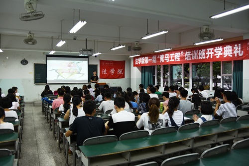 6月23日晚,学院第一期“青马工程”培训班开学典礼于一教106室举行,党委办公室老师车亮亮及学院学生会代理主席团、各部门代理部长,各新上任的小班班长、团支书及学习委员等79名学生干部参加。院党委书记薛治伟老师为学员们带来了《明责于心,“四自”于行》专题讲座。