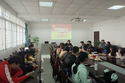 会议还阐述了十九大中所提及的中国特色社会主义思想的精神实质和丰富内涵在学院工作中的体现:党建带团建、团建服务于党建的工作模式中体现了坚持党对一切工作的领导;“第二课堂成绩单”、完善学生权益维护工作机制等工作的推进体现了坚持全面深化改革;与专业学科相结合的“法苑大讲堂”系列活动体现了学院对坚持全面依法治国工作的支持;全面从严治团、学生干部队伍纪律风气建设等工作体现了坚持从严治党。