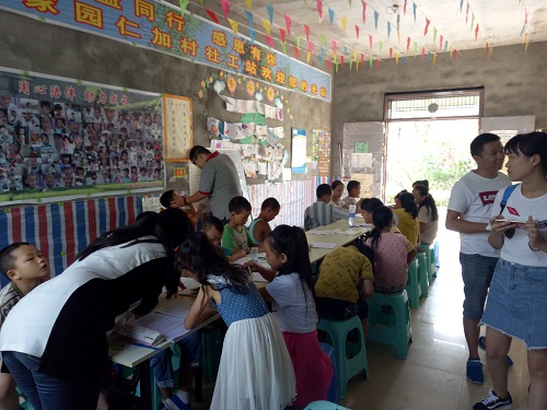 此次参观访问的主要目的是交流社区工作经验和农村儿童暑假辅导班经验。在到达成都心家园仁加村社工站后,两方负责人以及成员进行了简单的自我介绍。然后在成都心家园仁加村社工站工作人员带领下,四川农业大学养乐多团队成员在该机构开设儿童暑期辅导班进行参观学习,心家园农村儿童暑假辅导班由北京防灾减灾学院学生进行支教,开课内容主要是以课业辅导,兴趣发展和素质拓展三方面组成。所有的农村儿童依据年龄分在三间不同的教室,根据孩子年龄差距,备课方案不一样,上课内容不一样,侧重点也有所不同,每一间教室墙上都有纪律要求与孩子们的手工绘画作品展示,更显出了课堂的温馨。紧接着,两方机构人员在教室外开了一个简单的座谈会,会议围绕农村儿童暑假辅导班开展形式以及大学生暑期社会实践支教方面的相关准备,注意事项以及相关问题展开激烈的谈论。