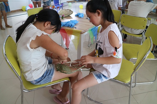 第二次编织比第一次顺利多了,小朋友拒绝了休息时间,甚至忘了额头汗水和小手伤口的疼痛,他们所有的注意力都集中在手里的竹条上,眼睛里散发着迷人而坚毅的光芒。