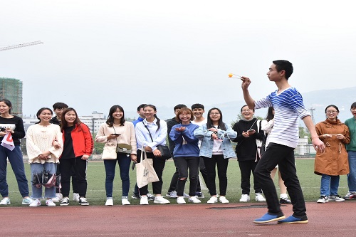 下午的趣味运动则更好地展示了学子们青春飞扬的良好风貌。“七人八足”行走的别别扭扭,摔倒的疼痛也敌不过脸上洋溢的笑容;“暴走乒乓球”有人胜券在握脸上带着些许俏皮的笑颜,也有人手忙脚乱却仍坚持走到终点;“无轨电车单脚”的摇摇晃晃,“圈内垫排球”方向不稳的排球……这些看似简单的趣味运动,其实也极为考验同学之间的默契与配合。