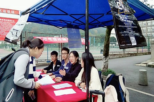 11月16日和11月17日连续两天中午,大学生创业论坛分别在老区食堂和新区主干道设点宣传,同学们踊跃参加,现场气氛热闹。