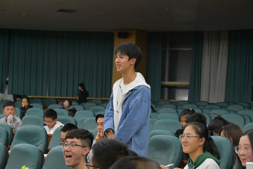 “师姐,加入你们部门有什么样的要求吗?”“部门工作会不会很忙呀?”“第二课堂到底是什么意思呢?对我们的学习生活重要吗?”在提问环节,台下的新生也大胆讲出心中的疑问,想要更多的了解自己心仪的部门。各部长耐心回答,有礼又不失风趣,收获掌声阵阵。比文化,比成长,晒幸福,比优越,宣讲会中各部长致力将部门最优秀的一面展示出来,向新生传递共同的邀约——团学是一个广阔的舞台,期待着全新血液的注入,使它更加矫健更加充满活力。