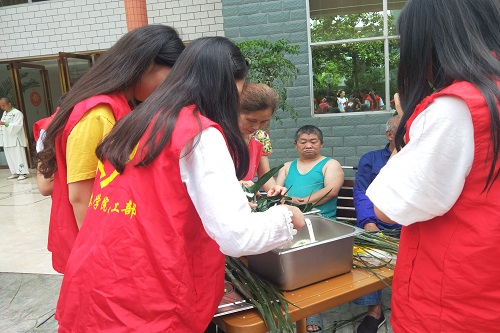为关爱孤寡老人,带给他们来自社会的一份温暖,在6月18日端午节这天,学院志工部和食品学院志工部志愿者们一起相约来到了雅安市社会福利院,陪伴福利院的老人们一起过端午节。