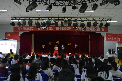 本次示范性团组织生活采用了汇报表演的形式,由文、法两个学院2017级的团支部共同带来的五个精彩节目组成。
