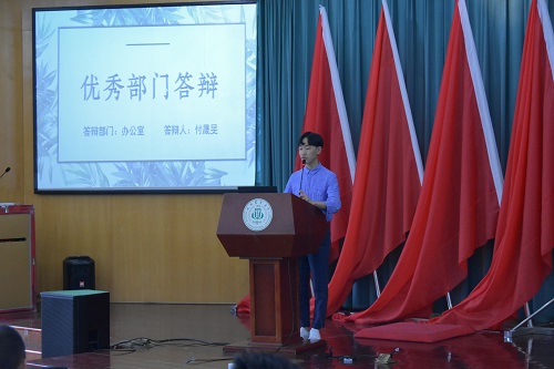 在提问环节,针对同学们提出的疑问,各部门主讲人都进行了全面细致的解答。面对同学们的建议,主讲人表示今后会不断完善部门的制度,创新活动开展形式,打造更为精彩的学院活动。激烈的答辩结束后,由学代表和各部门干事进行现场投票,再结合近一年来学院对各部门的考核评分,最终实践部、学习部、传媒中心三个部门荣获本次优秀部门奖。