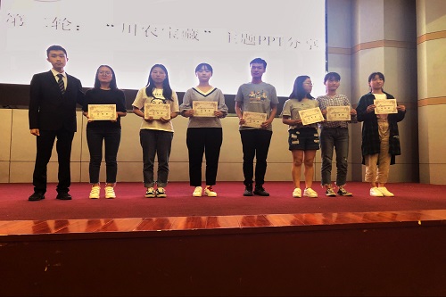 经过初赛上机操作的筛选,最终有12名选手脱颖而出进入总决赛。比赛共分为两轮,第一轮为“一站到底”抢答环节。选手们分为两批进行答题,经过激烈的抢答环节,五位选手拔得头筹进入下一轮。第二轮的“川农宝藏”PPT分享交流环节,从办公软件技巧方面着手,以川农宝藏为主题,一方面旨在考察选手PPT基础技能掌握程度,一方面加深选手及观众对川农的认知和情感。比赛现场,参赛选手们都精神饱满,自信昂扬的展现出自己的风采,PPT风格或简约莞尔,或明媚活泼,或古韵悠悠。经过角逐,吴羽寒最终夺得本次比赛一等奖。