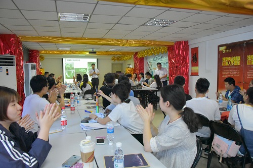 随后公司发展部经理刘雅清以“人为什么要学习”的问题为引入点,通过“开放之旅”、“千里之行始于足下”、“敢问路在何方”等三个方面引导学员思考,带领他们探索内心的声音,并结合自身从业经历向大家分享了自己的工作经验,让同学们懂得事业的内涵以及如何去规划自己职业生涯路,激励学员们为追寻幸福生活而奔跑。