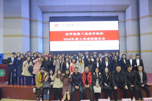 为总结学院团学组织过去一年以来的工作经验,进一步规范学生干部作风,推动学生工作开展,12月28日,学院第三届团学组织2018年年度工作述职报告会在逸夫楼小礼堂隆重召开。学院党委办公室主任、团委书记赵野逸,学院党委办公室副主任、团委副书记黄志辉,党委办公室老师蒋东序,以及三众委员会老师陈昱晓,耿鹏飞,李军妍,吴宜男出席本次会议,学院学生会主席团成员,各部门主干以及200余名学生干事参加本次报告会。
