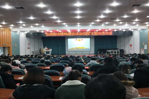 12月4日下午,法学系老师耿鹏飞在十教小礼堂为同学们带来了“弘扬宪法精神,建设法制校园”主题讲座,通过专业的知识讲解与生动的案例分析,加深了同学们对于宪法精神理解,同时进一步认识到了“学法懂法守法”的重要性和必要性。