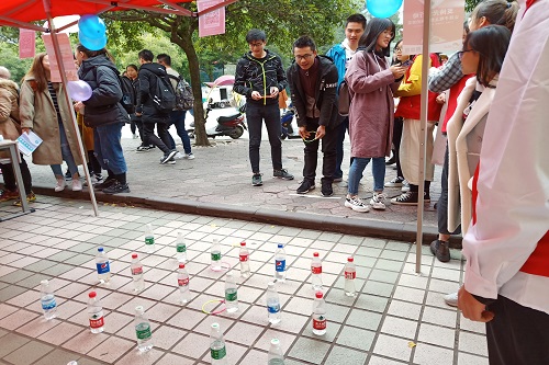 志愿者与路过的同学热情地介绍此次活动,一顿免费午餐的价格即可参与游戏,路过的同学们都积极参与到活动中来,即使最后没有获得奖品,能够为那些孩子献一份爱心,同学们也表示很开心。一位路过的阿姨听说我们在做爱心活动,二话不说就掏出五元钱给志愿者。还有不少同学询问能不能直接捐钱,不玩游戏。