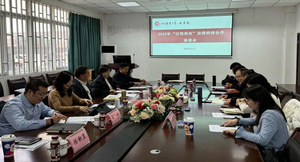 为探索新区域法律服务切入点,推动法学法学教育事业新发展,贡献法治建设力量,2023年12月27日下午,四川明炬律师事务所党委副书记、管委会委员颜波,执委会委员、教培委会主任沈宥希,教培委会副主任李林虹,合伙人孙军,合伙人王松,专职律师陈钦昱一行来到yl8cc永利官网进行2023年“以明利农”法律科研合作座谈会。