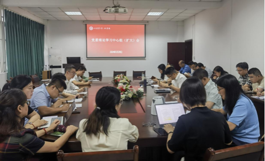 5月29日下午,学院在文法楼112会议室召开党委理论学习中心组(扩大)会议,全体教职工参会,院党委书记周海波主持会议。
