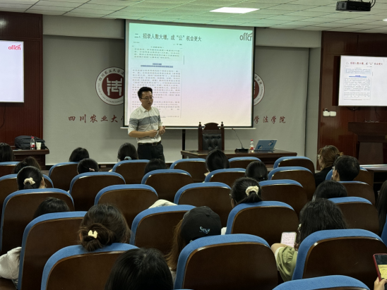 为增进2025届毕业生对公务员考试的理解,6月18日下午,学院邀请中公教育雅安分公司刘磊老师在文法楼119多功能室开展“智慧点亮仕途”公考公益讲座,吸引近100名同学参与。