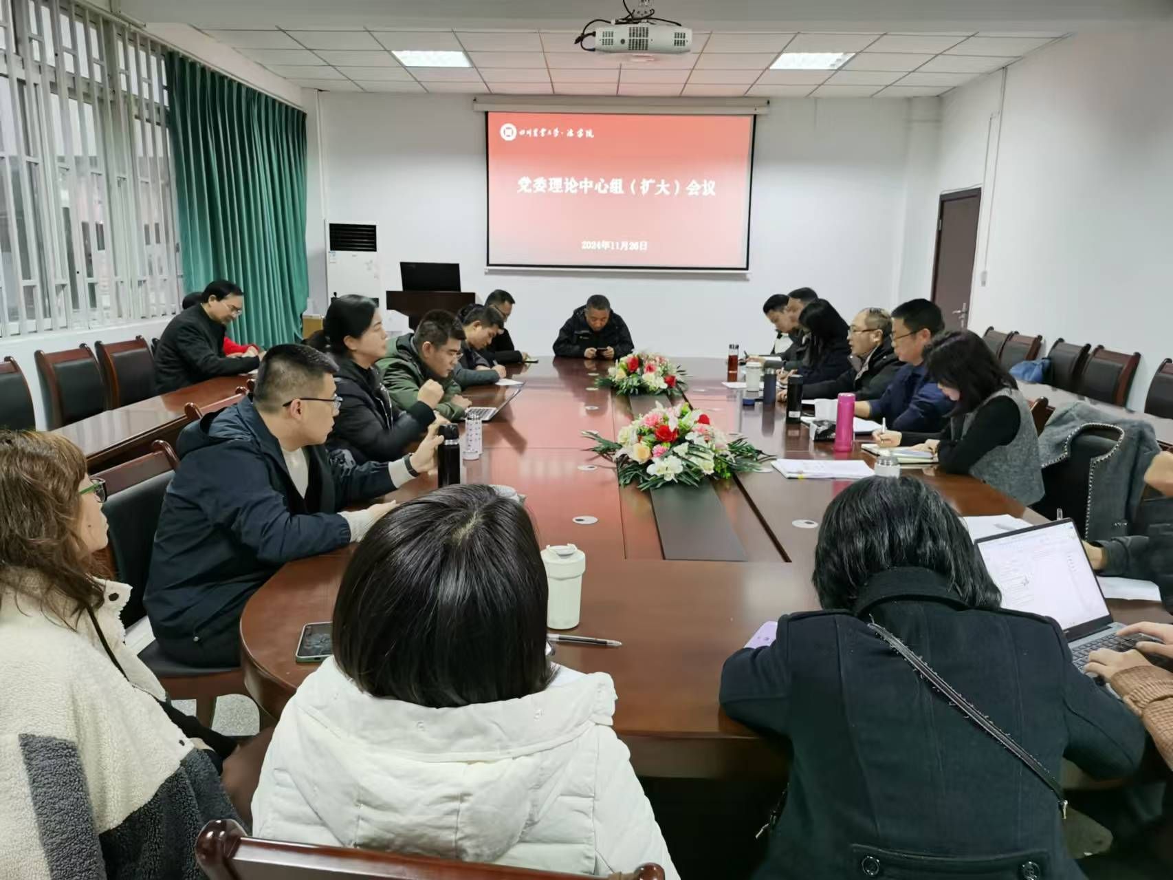 11月26日下午,学院在112会议室举行党委理论学习中心组(扩大)会议,学习全省教育大会精神,安排部署本科教学审核评估相关工作,全院教职工参加会议。会议由院党委书记周海波主持。